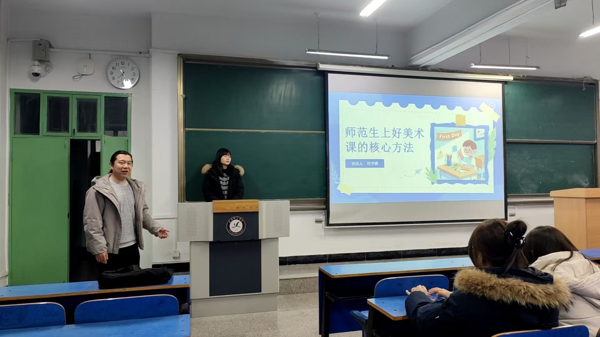 12月17日,我院邀请咸阳市彩虹小学美术组组长、骨干教师付子睿,为2022级美术学专业全体师范生作题为《如何上好一节美术课——师范生打造优质课堂的核心方法》专题讲座。讲座由学院副院长樊桦主持。